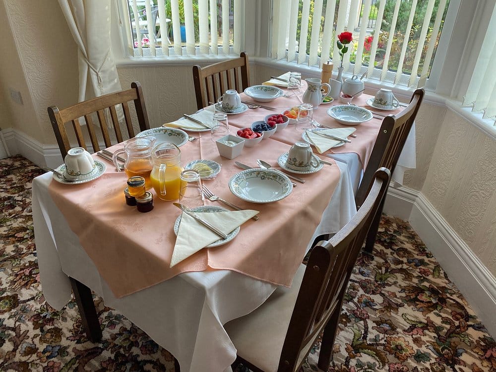 We serve Traditional Cooked Breakfast with free range eggs,. A choice of Fresh Fruits and Yoghurts, Fruit Juice and Selection of Cereals.